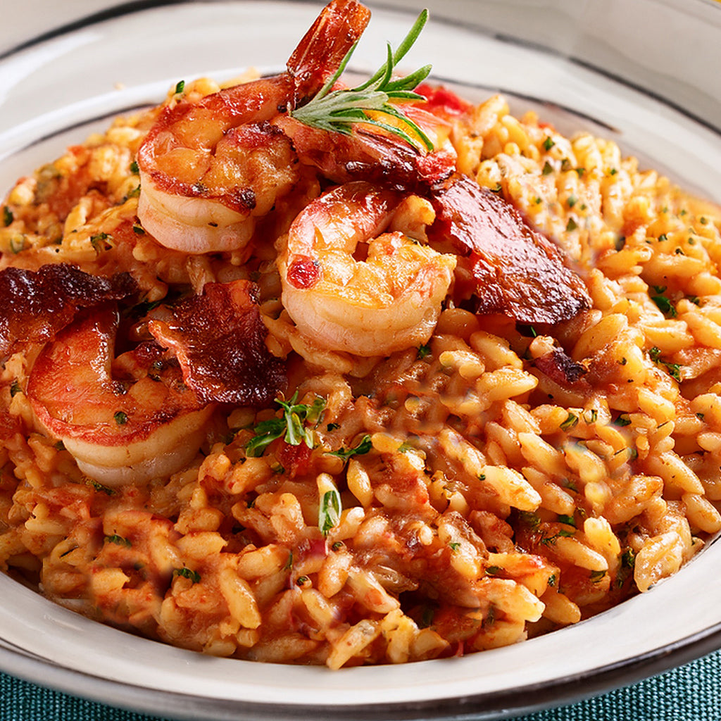 A vibrant twist on comfort food – smoky bacon, juicy prawns, and a hint of chilli tossed through orzo pasta. The Silk Road spices add a gentle heat and